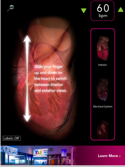 Virtual Heart lets you explore multiple real-time views of the human heart, using the same highly realistic visual elements as the iconic Giant Heart at the Museum of Science and Industry, Chicago. This vibrant 13-foot-tall animated heart from MSI's YOU! The Experience is now also available in convenient iPad size.