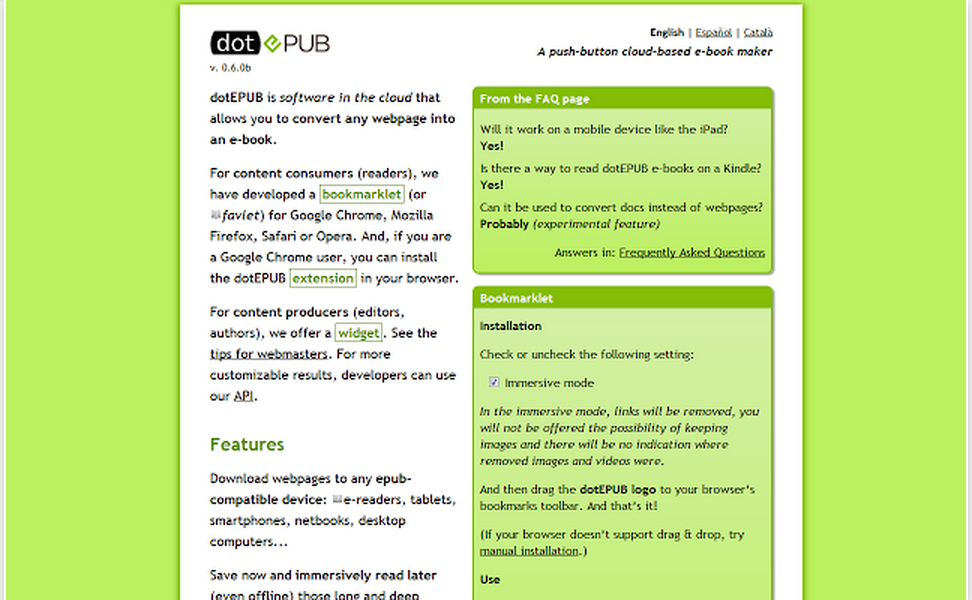 dotEPUB allows you to convert any webpage into an EPUB or Kindle e-book. Download webpages to any device: e-readers, tablets, smartphones, netbooks, desktop computers...