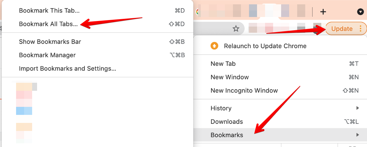 Chrome allows you to bookmark all your open tabs by simply using the Bookmarks button. Here is how to do it: