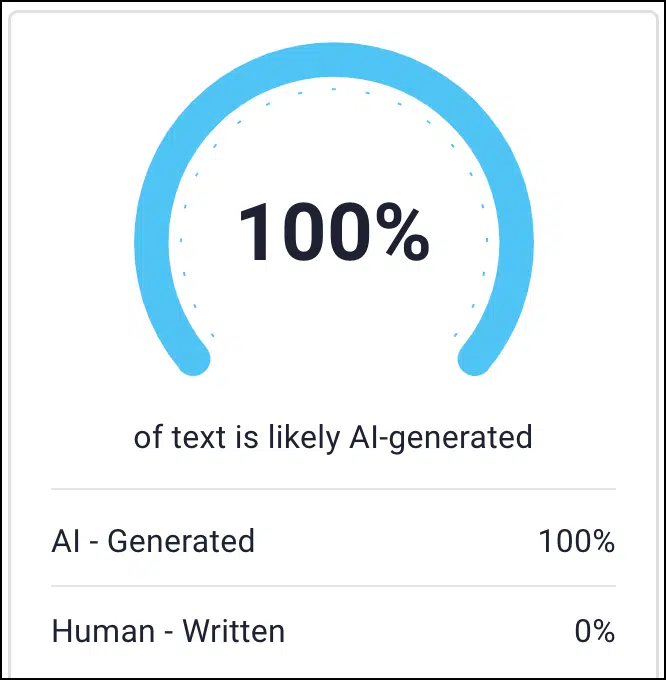 For my AI-generated sample, Smodin was able to detect it as being AI content with a score of 100%.
