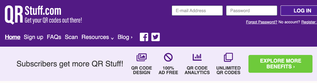QR Stuff is both a free QR Code generator and a QR Scanner. It allows you to generate QR Codes for a number of data types such as video files, website URLs, social media websites, image and audio files, Dropbox, Zoom meetings, attendance, Skype calls, plain text, and many more. Only premium QR Stuff users are able to add logos to their QR Codes, use ready-made templates, create dynamic QR Codes, access analytics reporting and QR Codes editing.