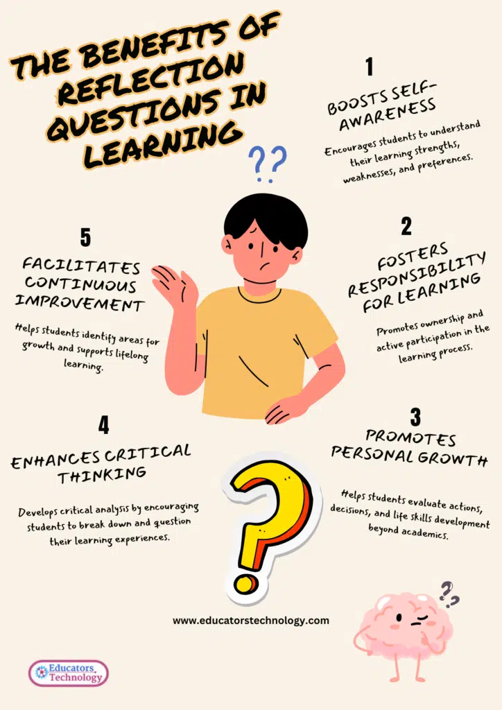 The following are some of the benefits of integrating reflection questions in learning: