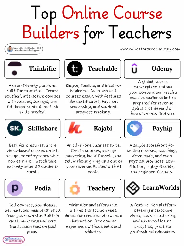 From engaging course builders and customizable landing pages to comprehensive payment processing options, each platform offers unique advantages to educators and creators alike. I’m aware there are several other course building platforms that did not make it to this list, but I’ve chosen to focus on those that I believe offer the most value and versatility for a wide range of needs.