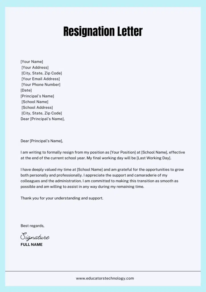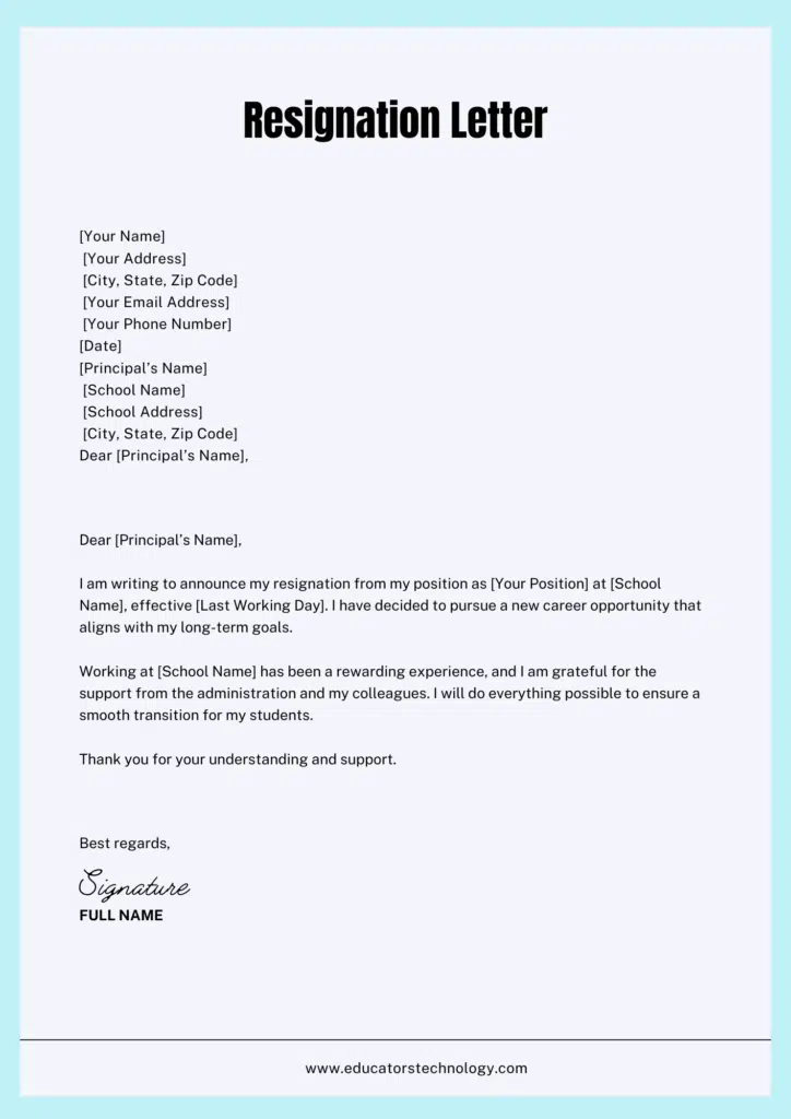 - Review Policies: Check your school’s policies on resignation to ensure compliance.