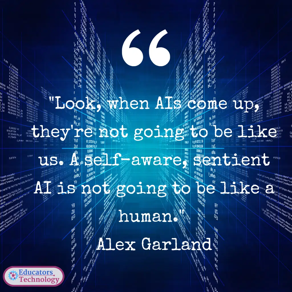 21. “Look, when AIs come up, they’re not going to be like us. A self-aware, sentient AI is not going to be like a human.” Alex Garland