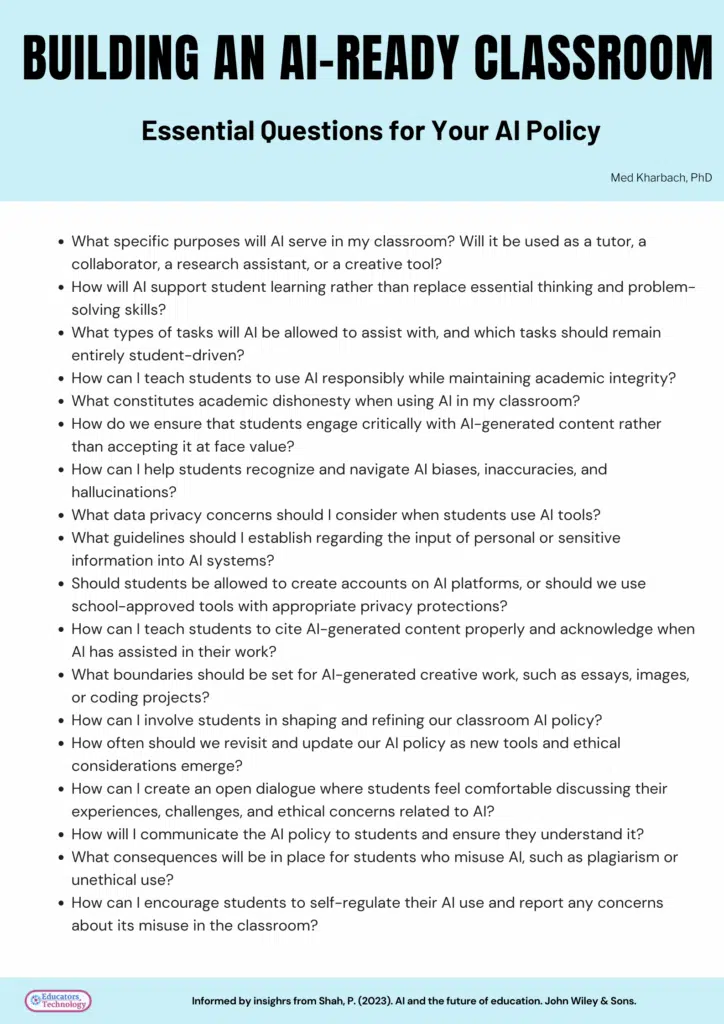 Below are essential questions to help you start building your own AI-ready classroom policy.