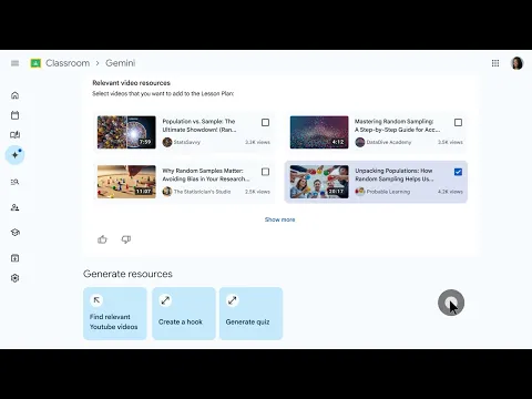 You’ll find it in your Classroom sidebar. Click the Gemini icon, and you’ll see a menu of tools designed specifically for teacher tasks: lesson plans, quizzes, rubrics, vocabulary lists, reading comprehension questions, differentiated assignments, and more. Google added over 30 of these AI-powered features, all focused on the stuff teachers actually create every week.